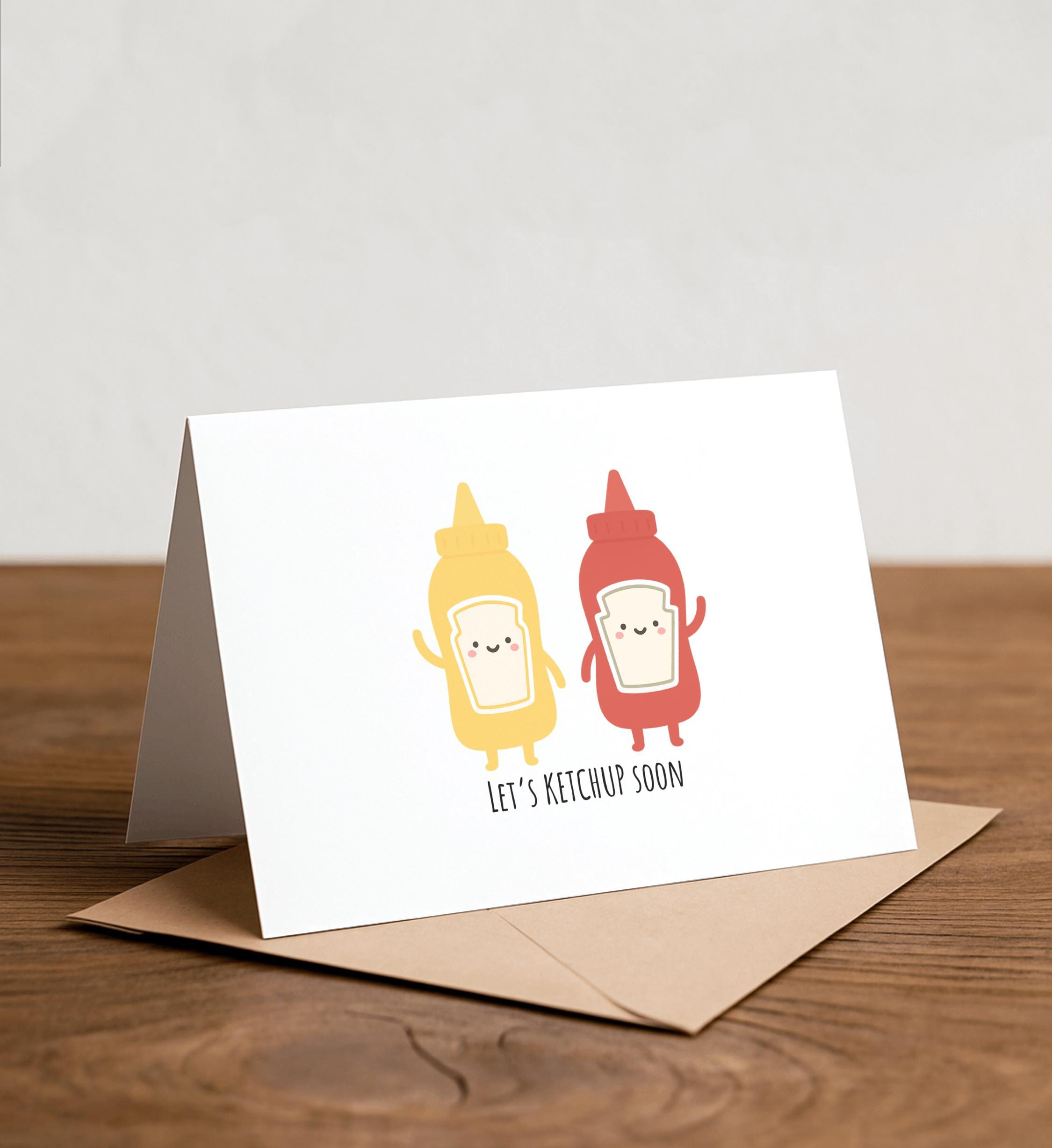 Let's KETCHUP soon - Ketchup Greeting Card, Friendship Card, Love Card, Handmade Card, Foodie card, Mustard, Heinz, Punny, Hot Dog