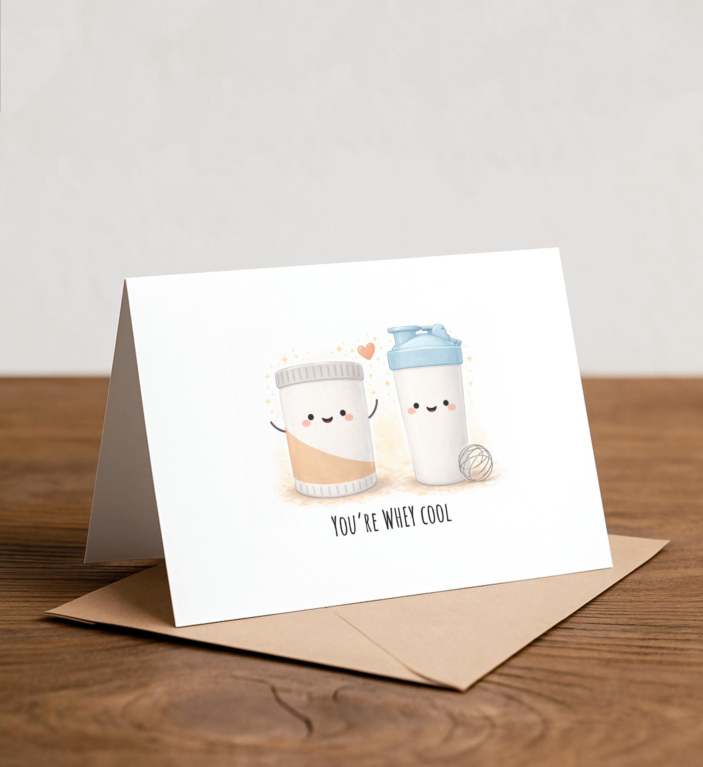 You're WHEY cool - Whey protein Greeting Card, Note Card, Funny valentine, Thank you card, dad joke, gym buddy, workout, healthy, protein