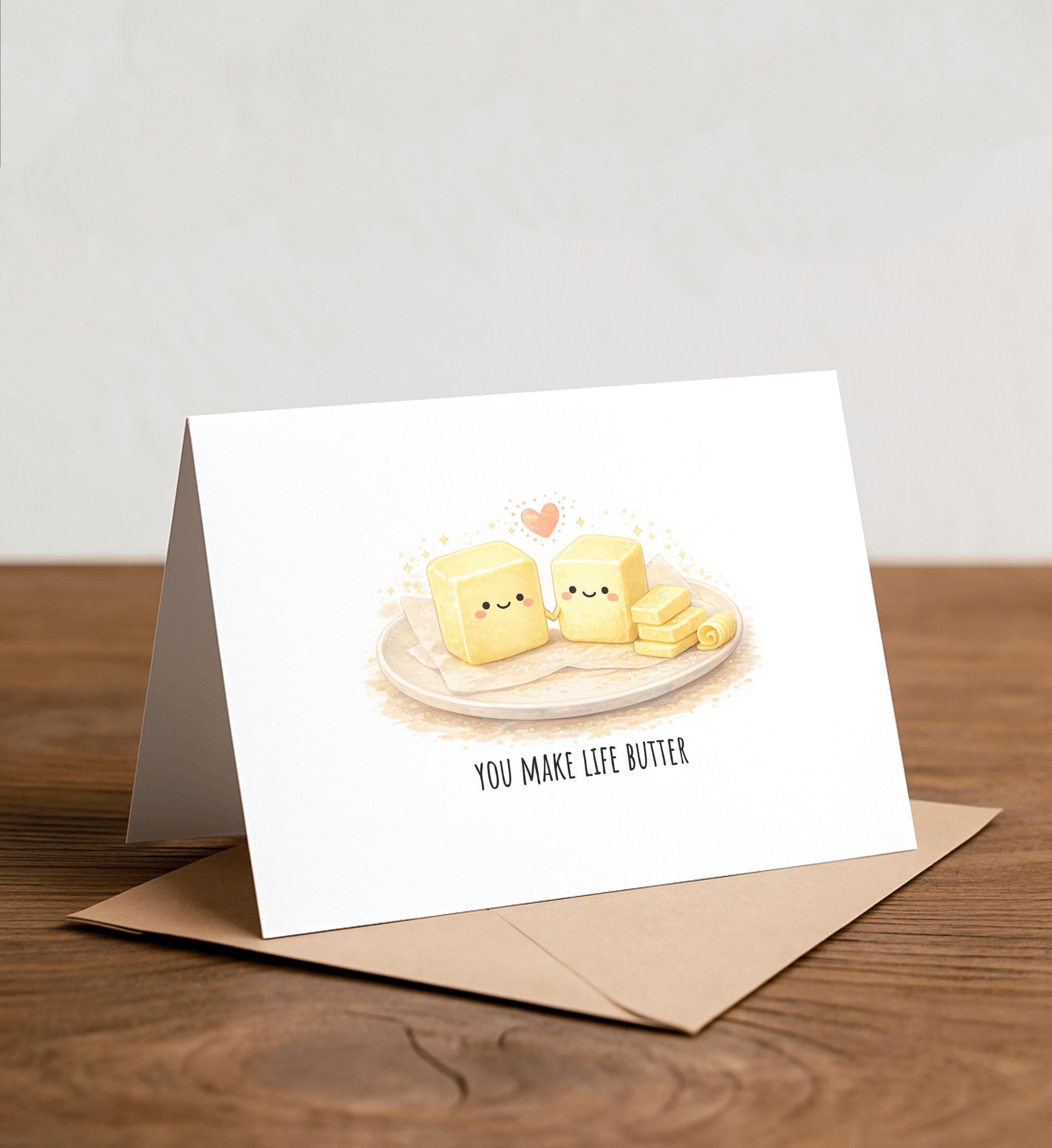 Hope you feel BUTTER soon - Feel better Greeting Card, Note Card, Condolence card, dad joke, butter, feel better, sick, friend