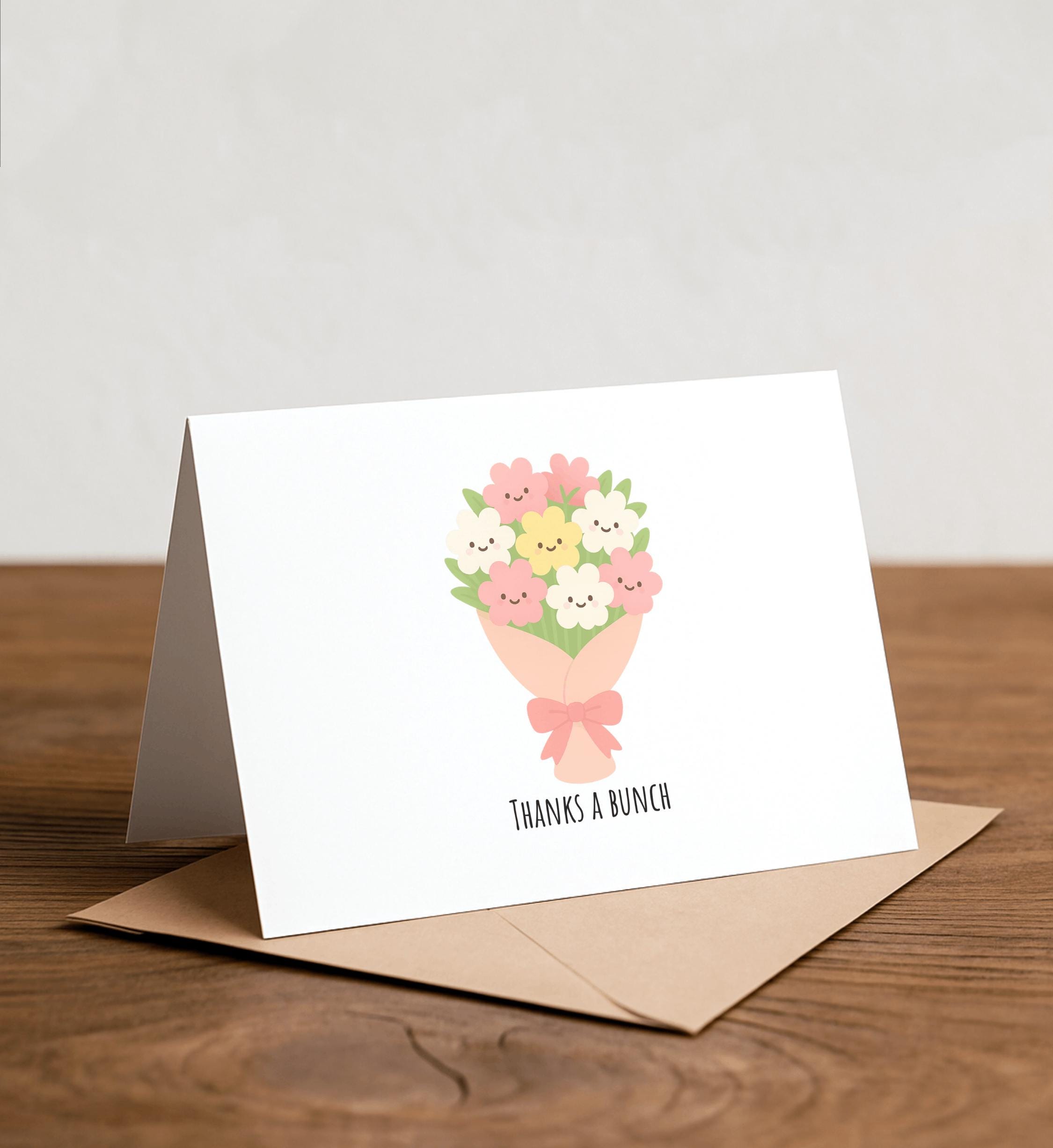 Thanks a bunch - Flower Bouquet Greeting Card, Happy Card, Friendship Card, Thank you card, Punny, Flower, Spring