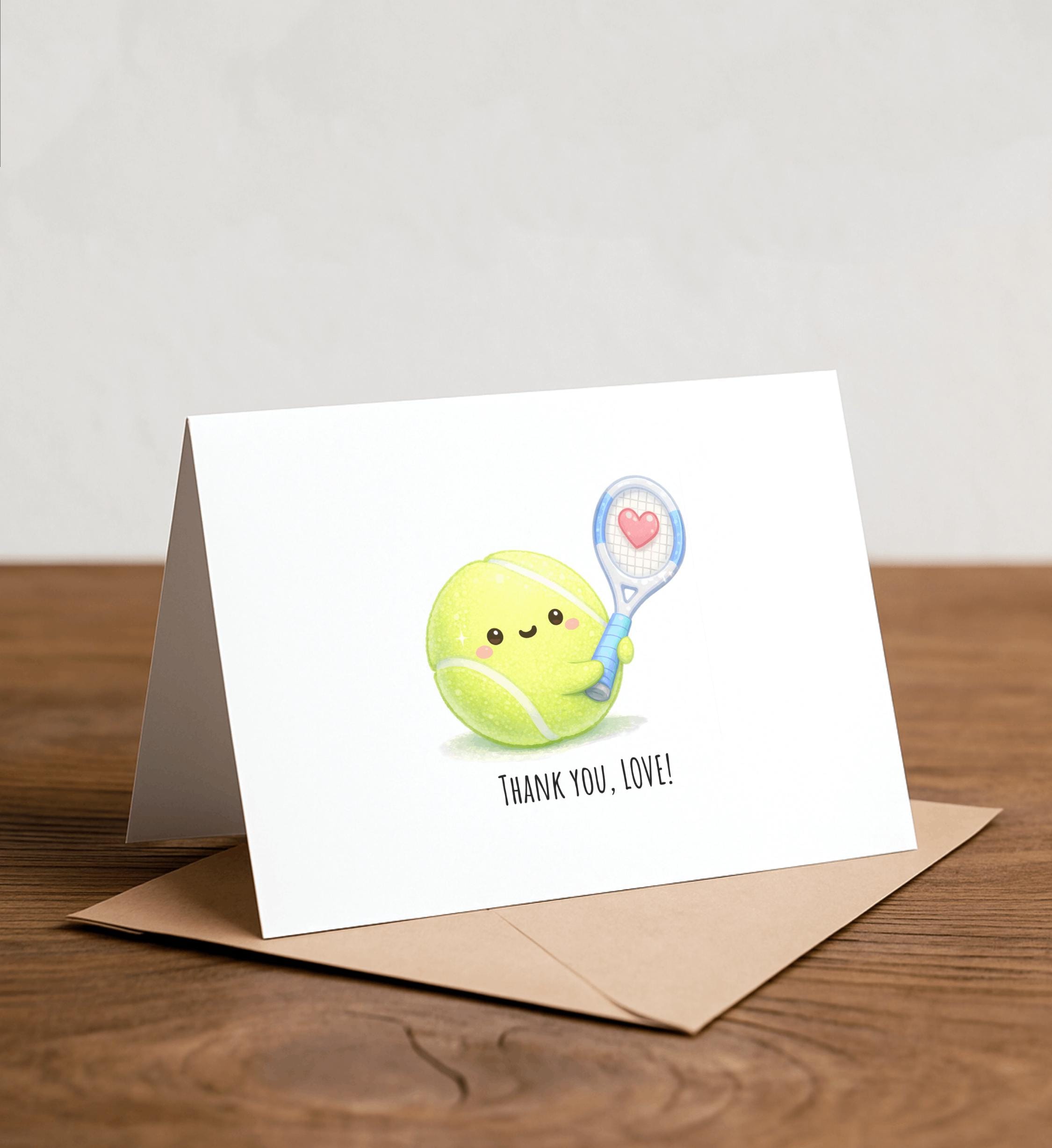 THANK YOU, LOVE! - Tennis Greeting Card, Note Card, Funny valentine, Thank you card, dad joke, love card, cute