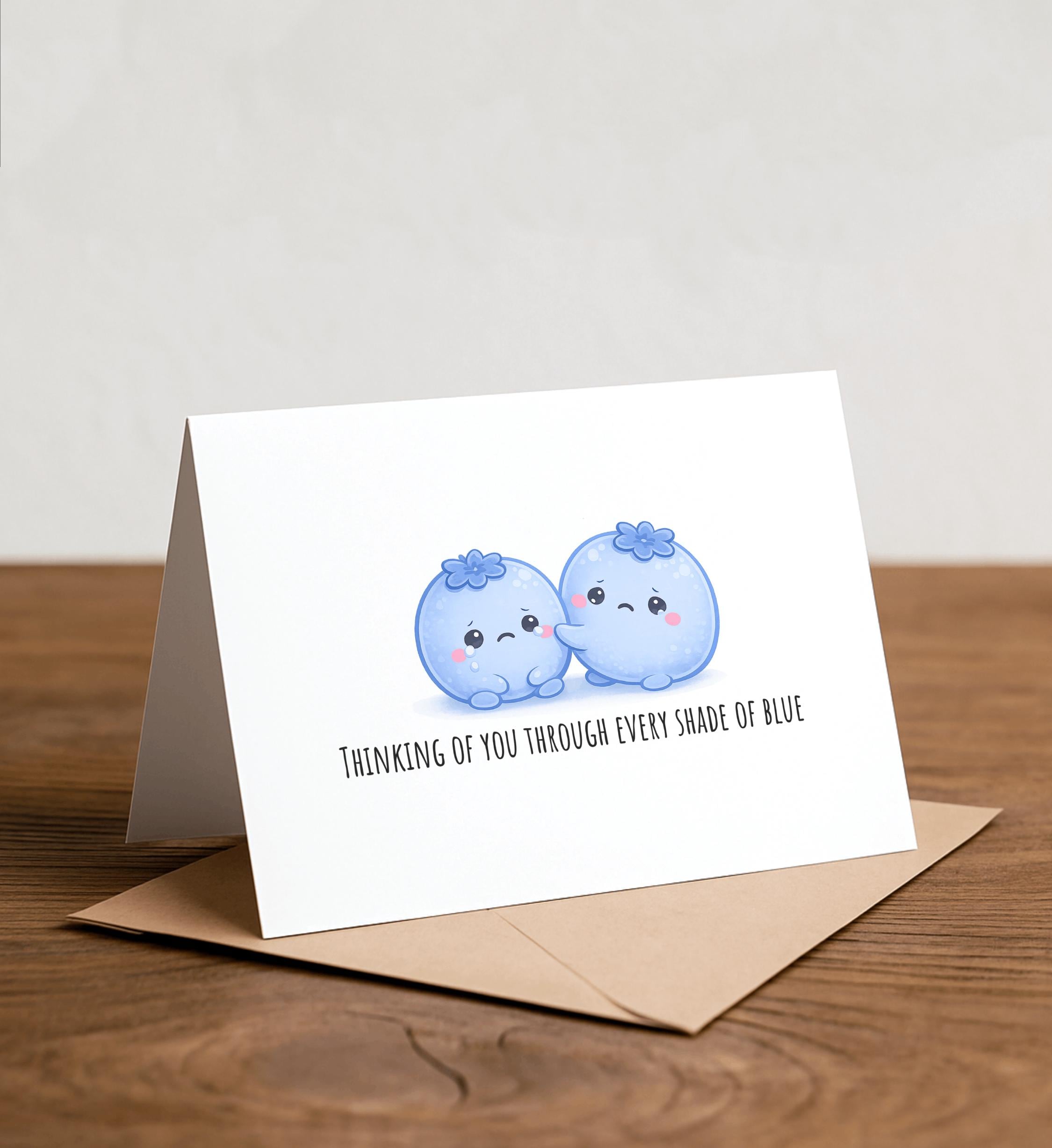 Don't be BLUE - Condolences card, Feel Better, Blueberry, Sorry, Apology Card, Cute Apology Card, Punny Condolence, Warm wishes, blue
