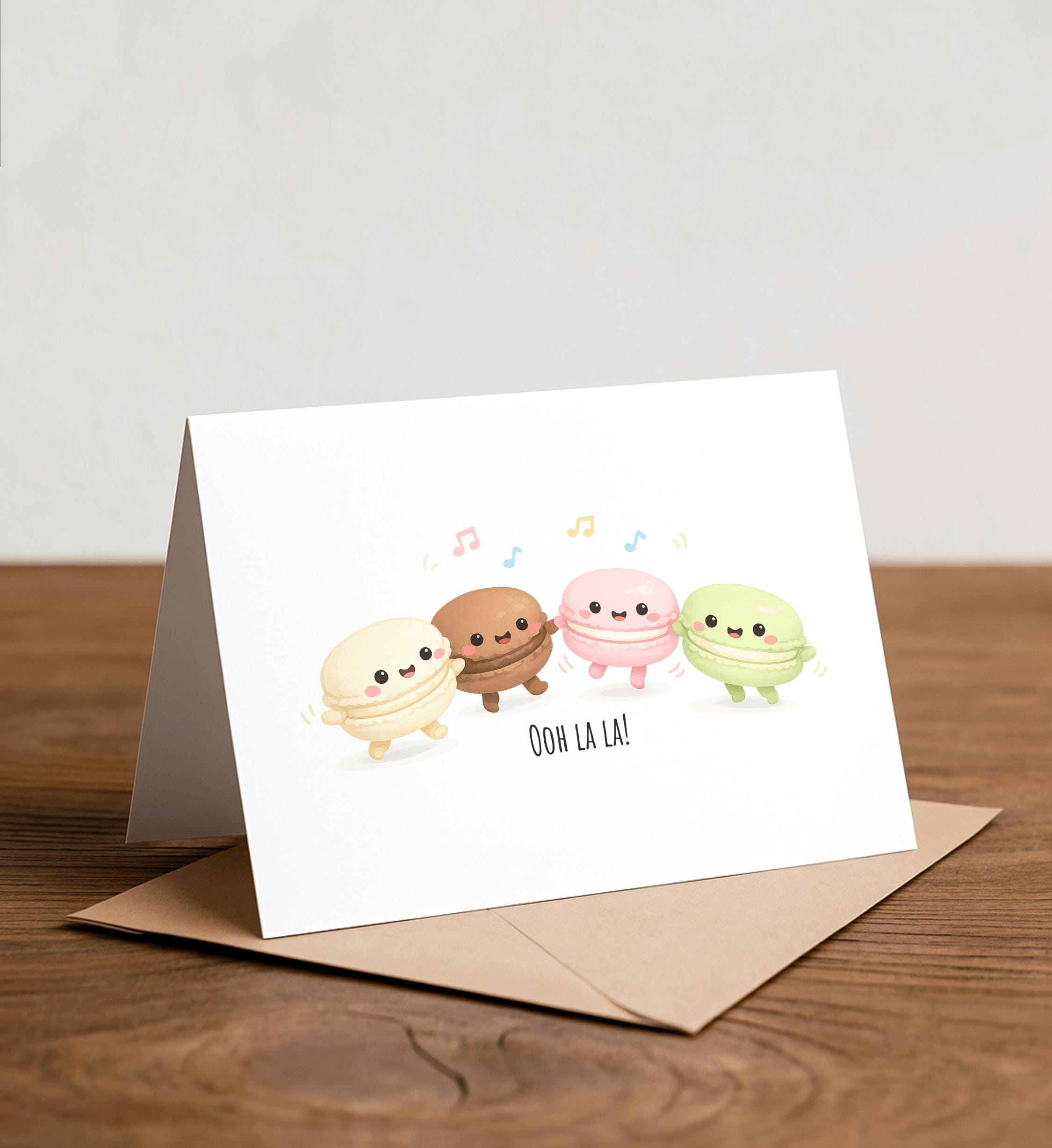 OOH LA LA - Macaron Greeting Card, Note Card, Funny valentine, Thank you card, Macaron, Pastry, French Pastry, Dessert pun, sweet pun, funny