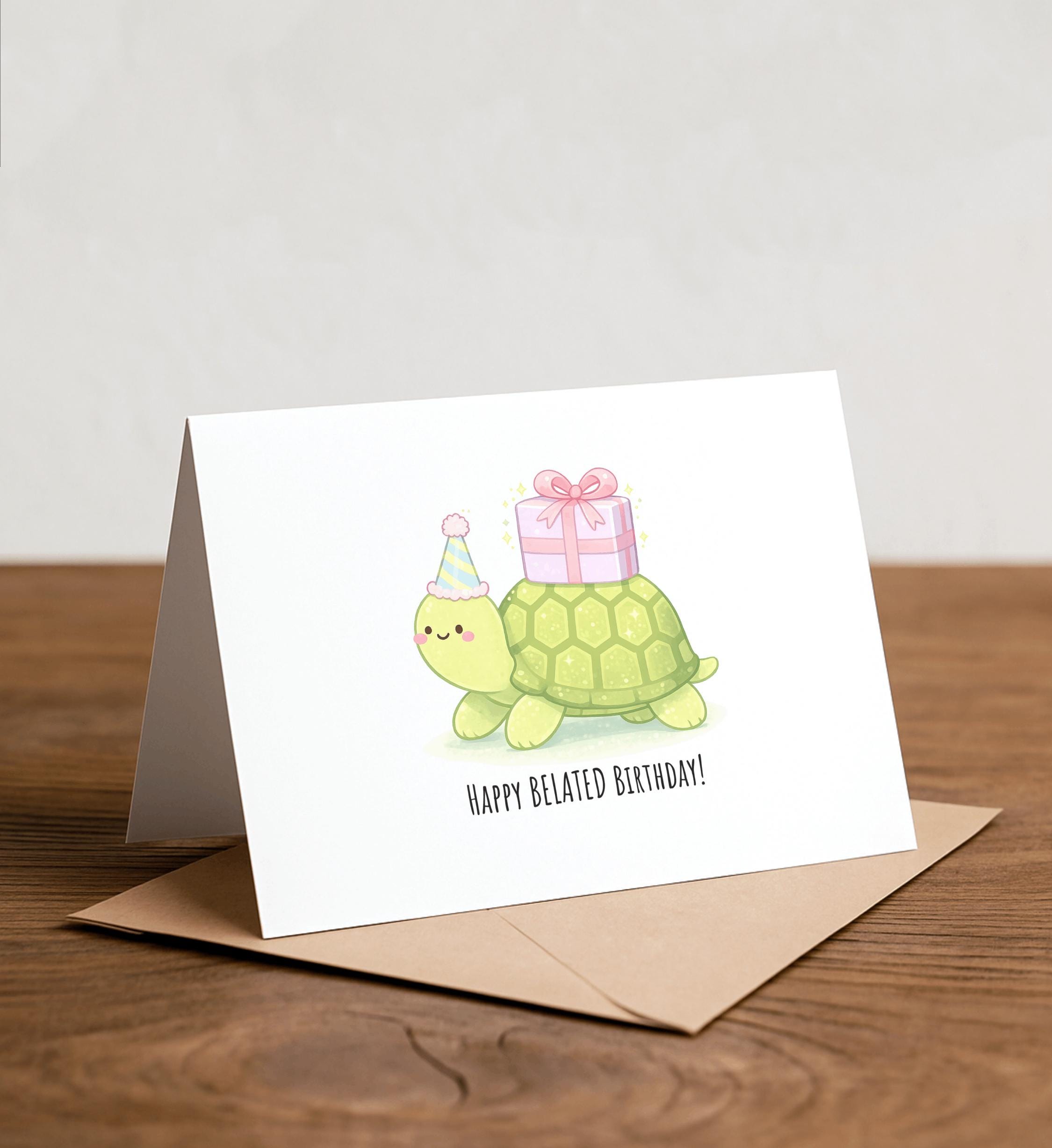 Happy BELATED Birthday - Turtle Greeting Card, Late birthday card, turtle birthday card, birthday gift, late birthday, slow birthday, office