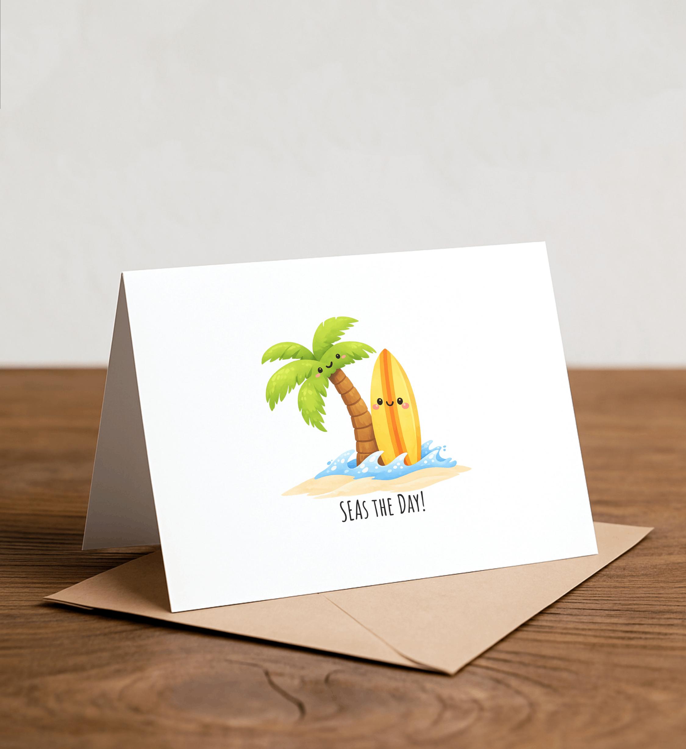 SEAS the DAY! - Surfer Greeting Card, Motivation, Surf, Shore, Surfer, Beach, Ocean, Motivational Card, graduation card, new, congrats, carpe diem
