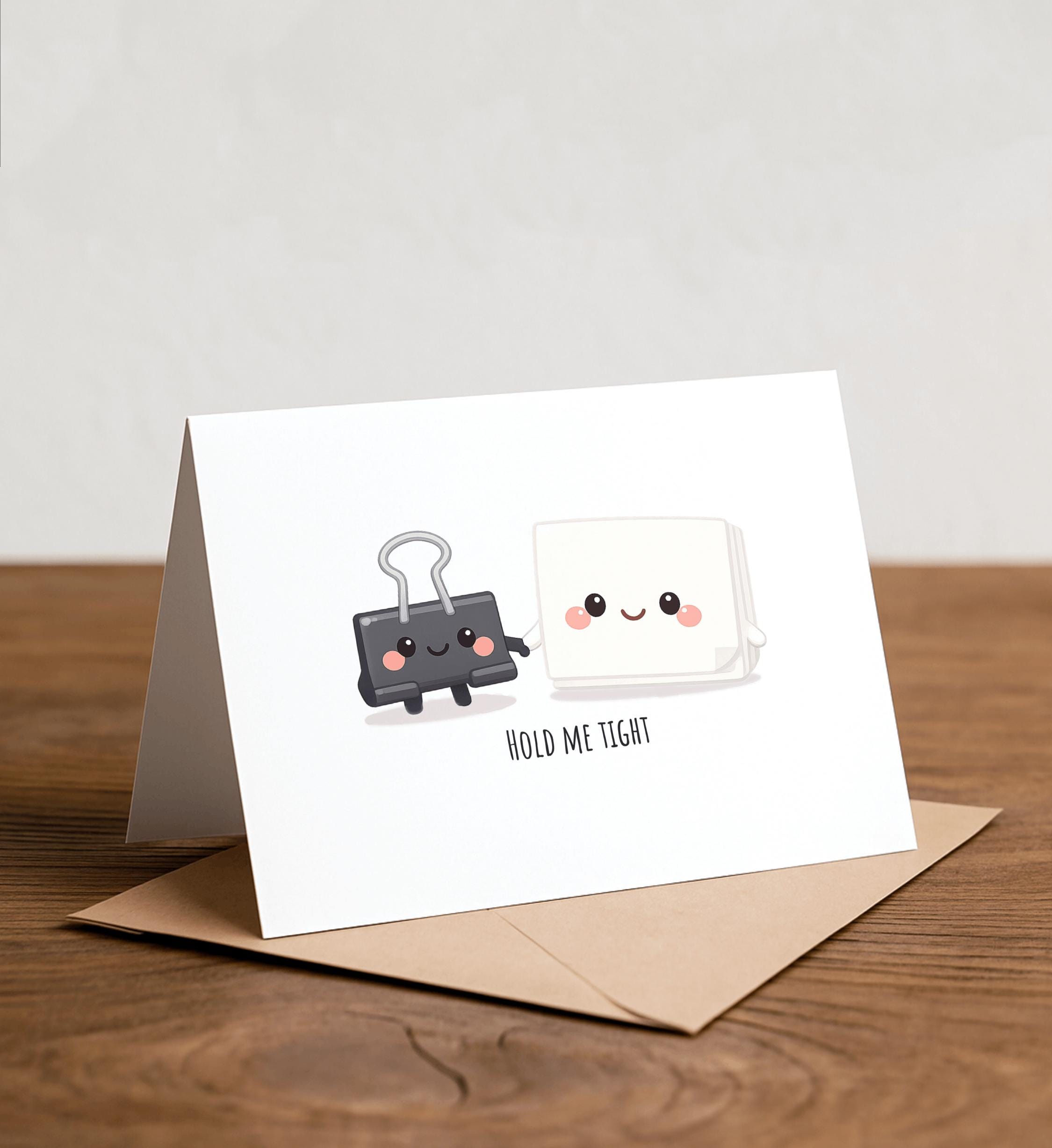 Hold me tight - binder clip, couples card, funny valentine, office, the office, school supplies, office supplies, paper clip