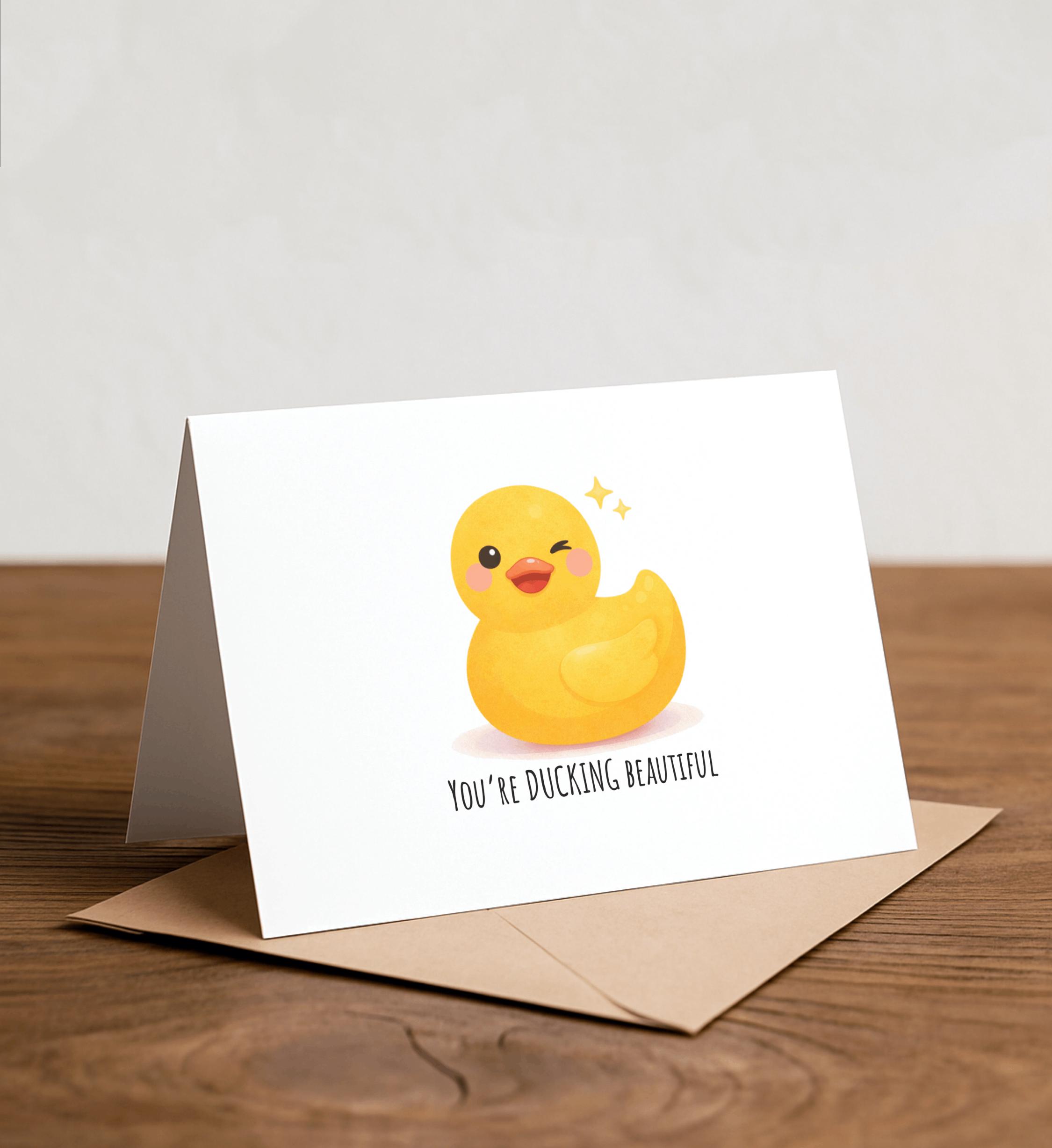 You're DUCKING beautiful - Duck Greeting Card, Happy Card, I Love You Card, Autocorrect, Punny Card, Anniversary, Love, Valentine